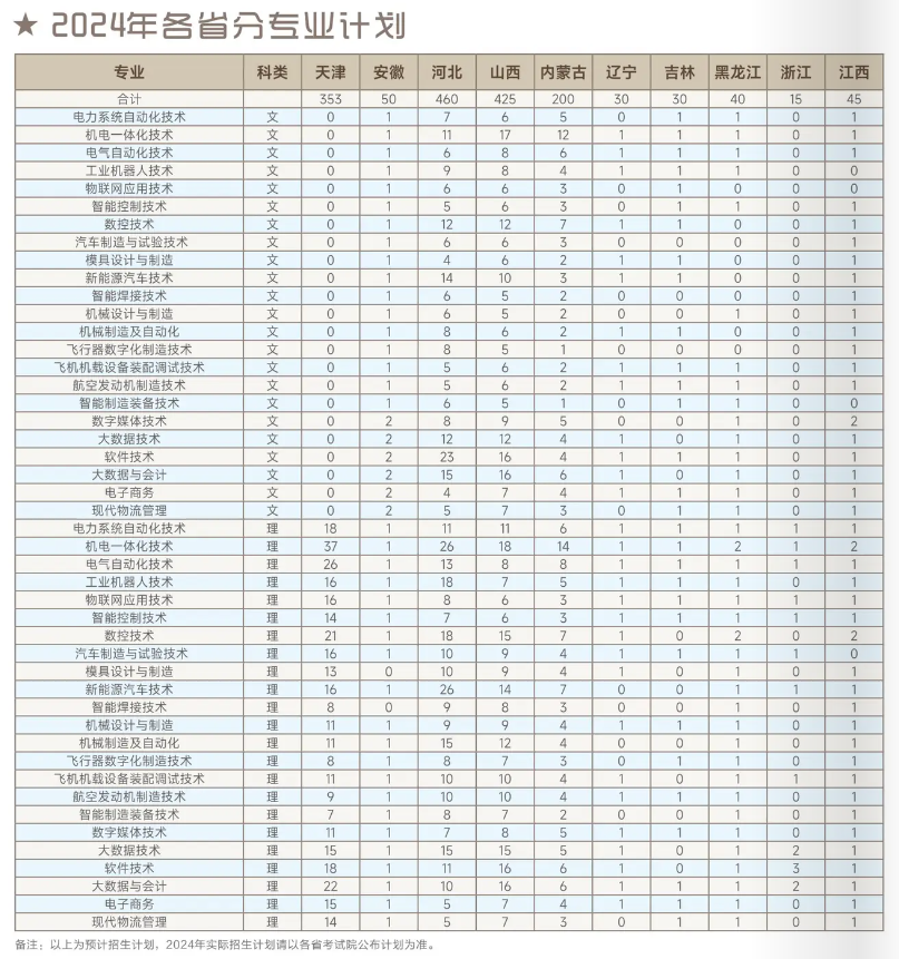 天津机电职业技术学院招生计划-各专业招生人数是多少