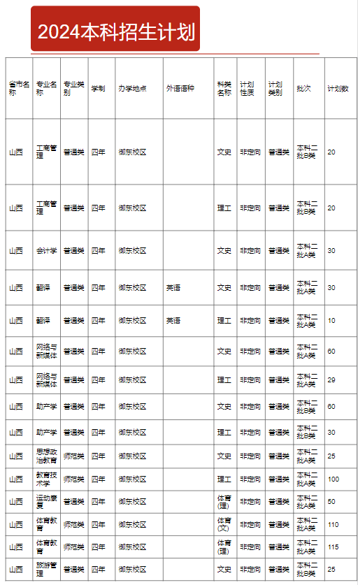 山西大同大学2025年招生计划预计将于6月中下旬公布,本文为大家整理的是山西大同大学2024年招生计划,主要包含招生专业、招生类别、各专业招生人数等信息,希望对大家有所帮助,如有变动或异议,请以各省市教育考试院或学校公布的信息为准。