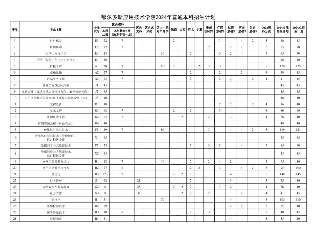 鄂尔多斯应用技术学院2025年招生计划预计将于6月中下旬公布,本文为大家整理的是鄂尔多斯应用技术学院2024年招生计划,主要包含招生专业、招生类别、各专业招生人数等信息,希望对大家有所帮助,如有变动或异议,请以各省市教育考试院或学校公布的信息为准。