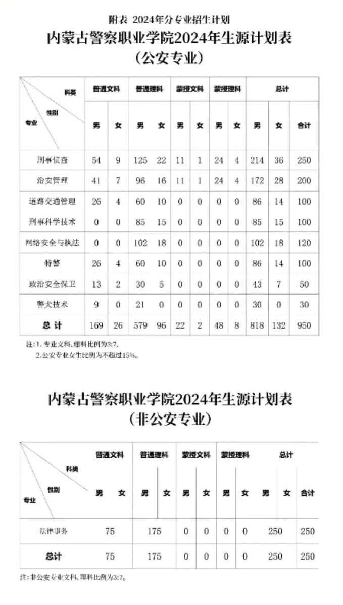 内蒙古警察学院招生计划-各专业招生人数是多少