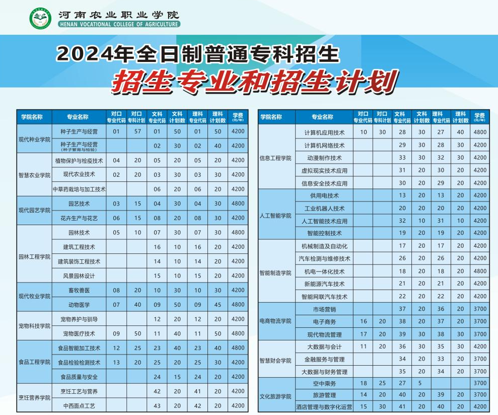 河南农业职业学院2025年招生计划预计将于6月中下旬公布,本文为大家整理的是河南农业职业学院2024年招生计划,主要包含招生专业、招生类别、各专业招生人数等信息,希望对大家有所帮助,如有变动或异议,请以各省市教育考试院或学校公布的信息为准。