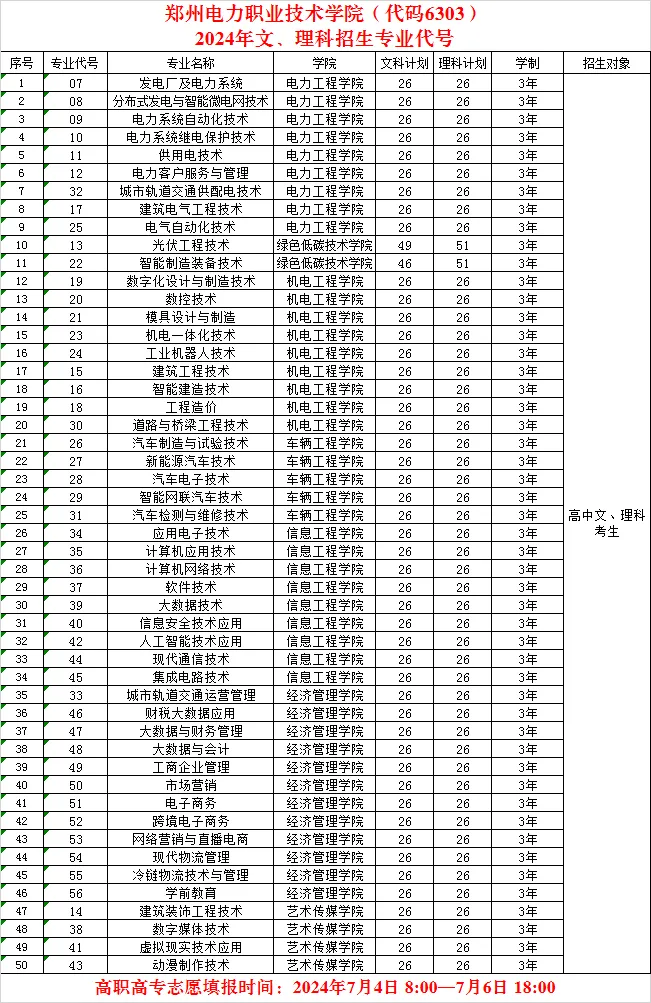 郑州电力职业技术学院招生计划-各专业招生人数是多少