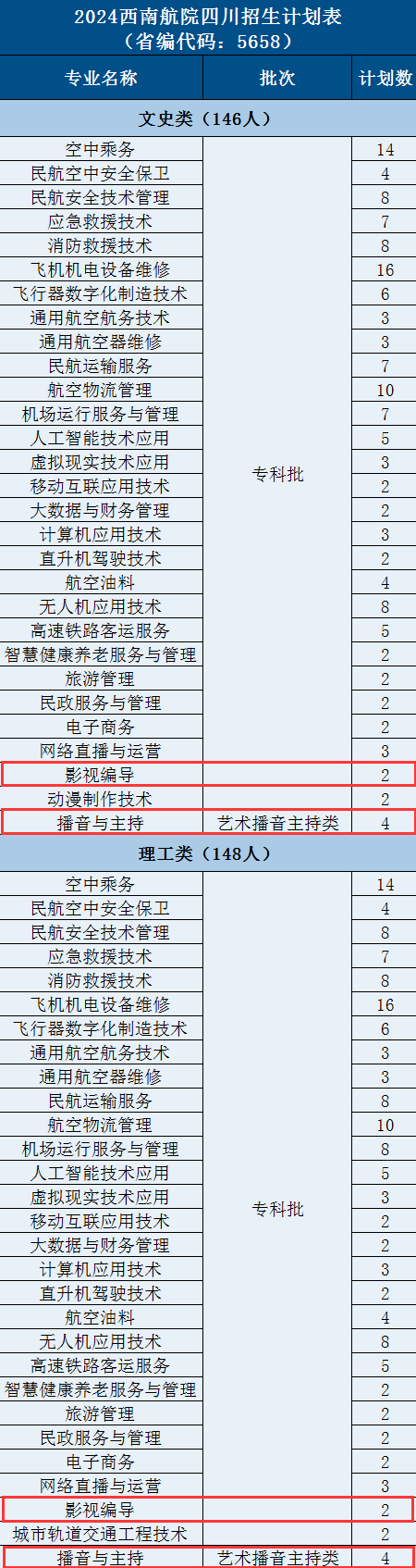 四川西南航空职业学院艺术类招生计划-各专业招生人数是多少