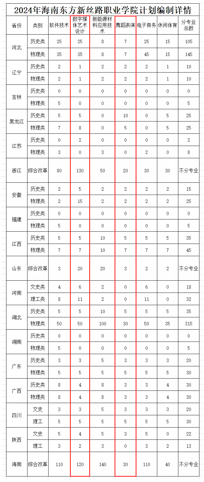 海南东方新丝路职业学院2025年招生计划预计将于6月中下旬公布,本文为大家整理的是海南东方新丝路职业学院2024年艺术类招生计划,主要包含招生专业、各专业招生人数等信息,希望对大家有所帮助,如有变动或异议,请以各省市教育考试院或学校公布的信息为准。