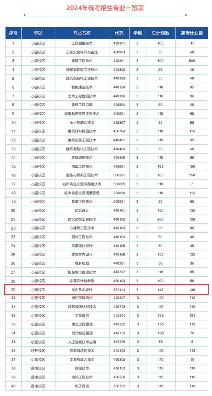 江西建设职业技术学院2025年招生计划预计将于6月中下旬公布,本文为大家整理的是江西建设职业技术学院2024年艺术类招生计划,主要包含招生专业、招生类别、各专业招生人数等信息,希望对大家有所帮助,如有变动或异议,请以各省市教育考试院或学校公布的信息为准。