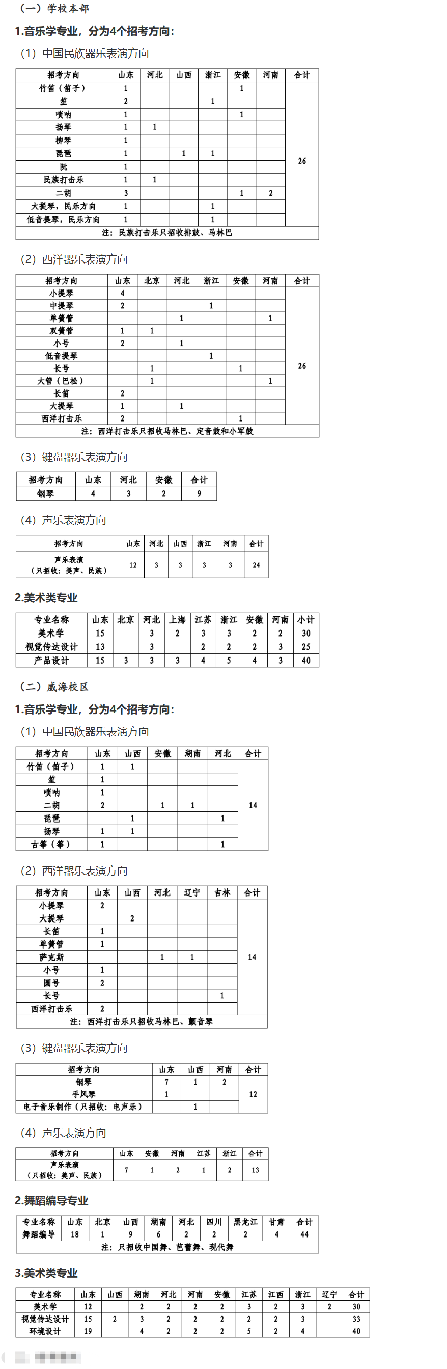 2025年我校艺术类专业计划招生380人,其中学校本部计划招生180人,威海校区计划招生200人。分省分专业(招考方向)计划分配情况如下(最终招生计划以各省级招生考试机构公布为准):