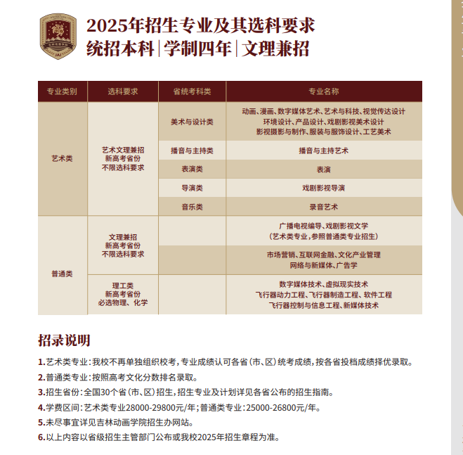 2025年吉林动画学院艺术类招生简章 时间:2025-06-22 艺体招生 完整内容点击链接查看:https://zs.jlai.edu.cn/uploadfile/2025/0508/20250508021408809.pdf