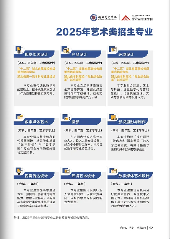 本文为大家整理的是2025年湖北商贸学院艺术类招生简章,主要包含院校概况、招生专业、招生计划、报考条件、录取规则、收费标准等信息,以下是详细内容,供大家参考。