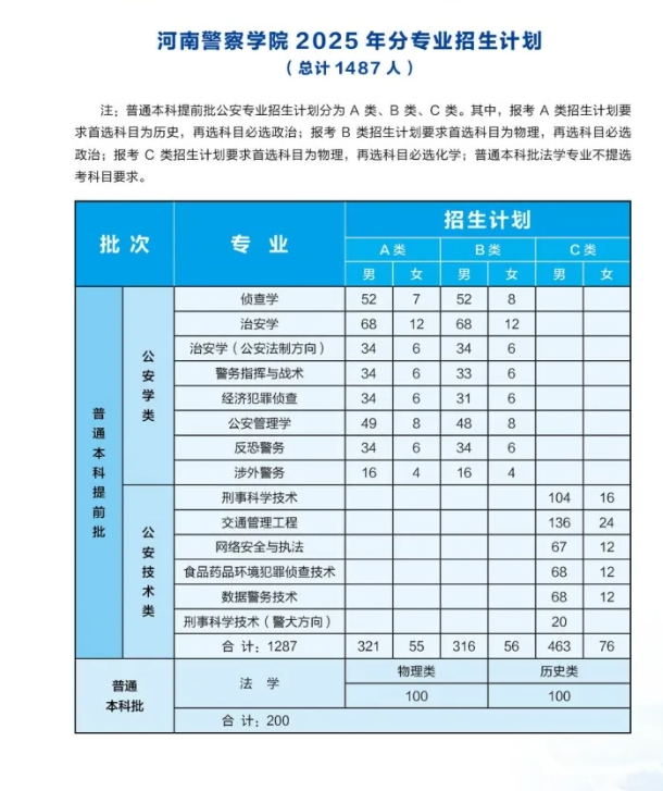 本文为大家整理的是河南警察学院2025年招生计划,主要包含招生专业、招生类别、各专业招生人数等信息,希望对大家有所帮助,如有变动或异议,请以各省市教育考试院或学校公布的信息为准。
