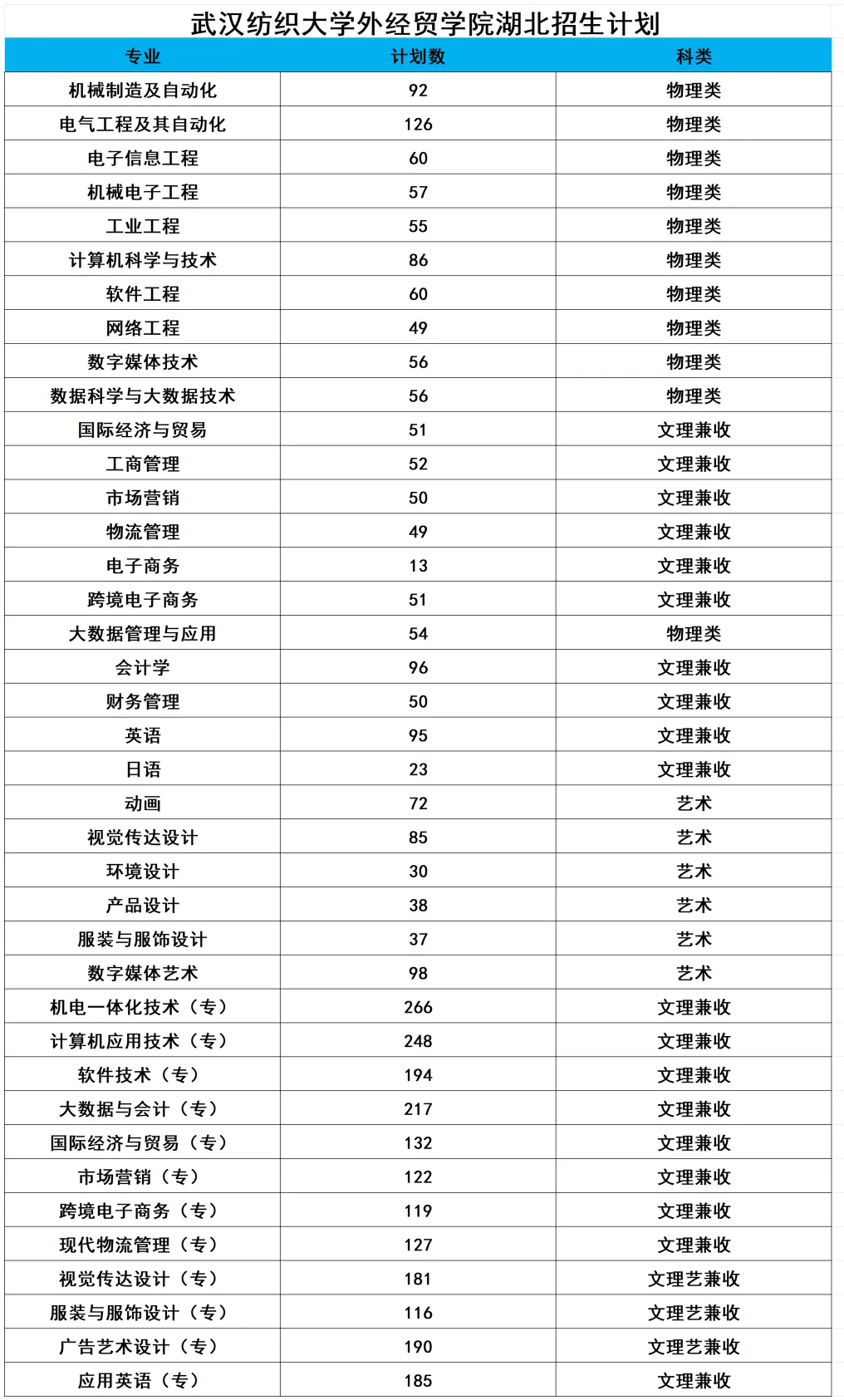 2025武汉纺织大学外经贸学院招生计划-各专业招生人数是多少