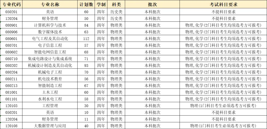西安理工大学高科学院2025年招生计划
