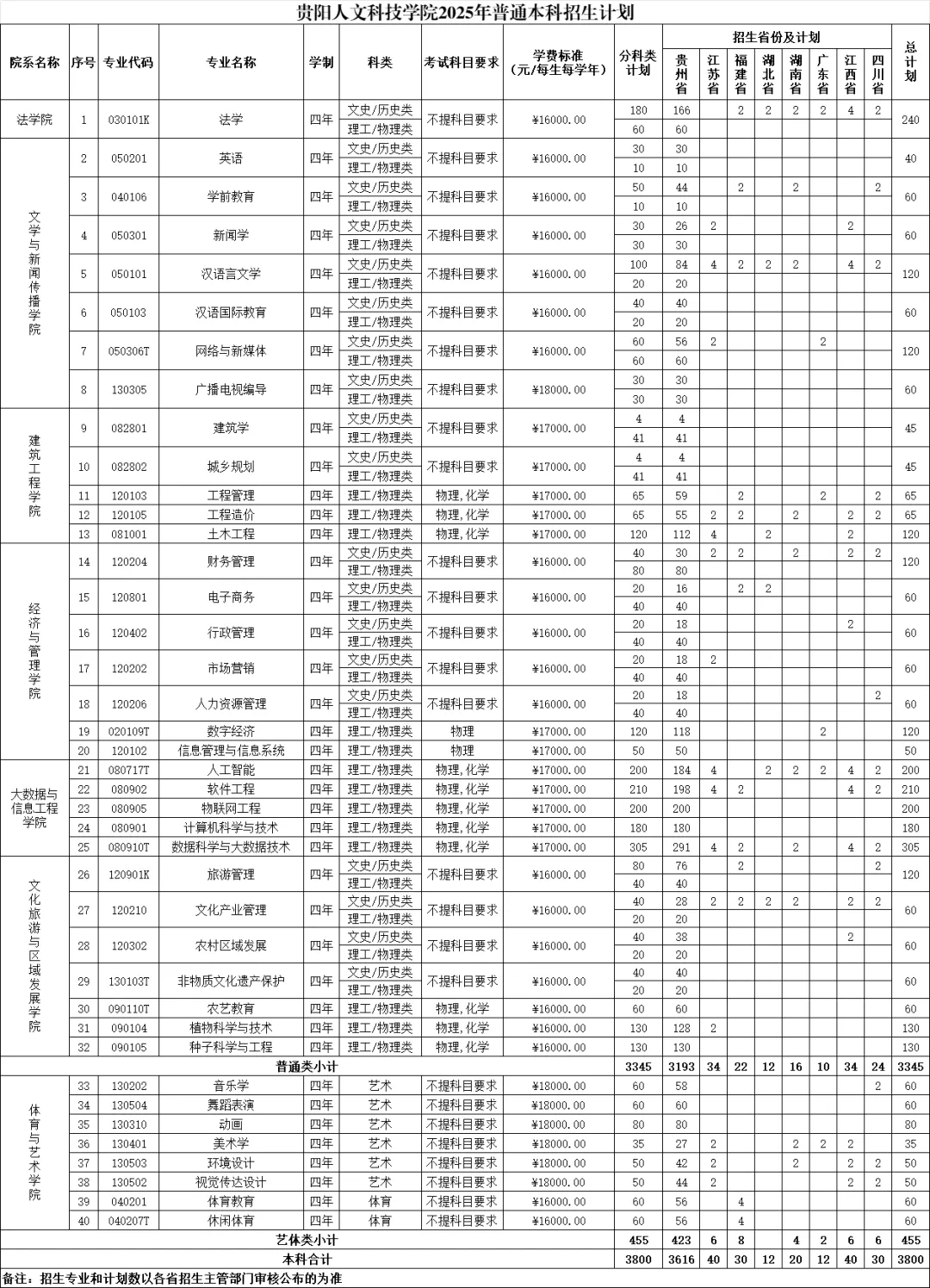 2025贵阳人文科技学院招生计划-各专业招生人数是多少