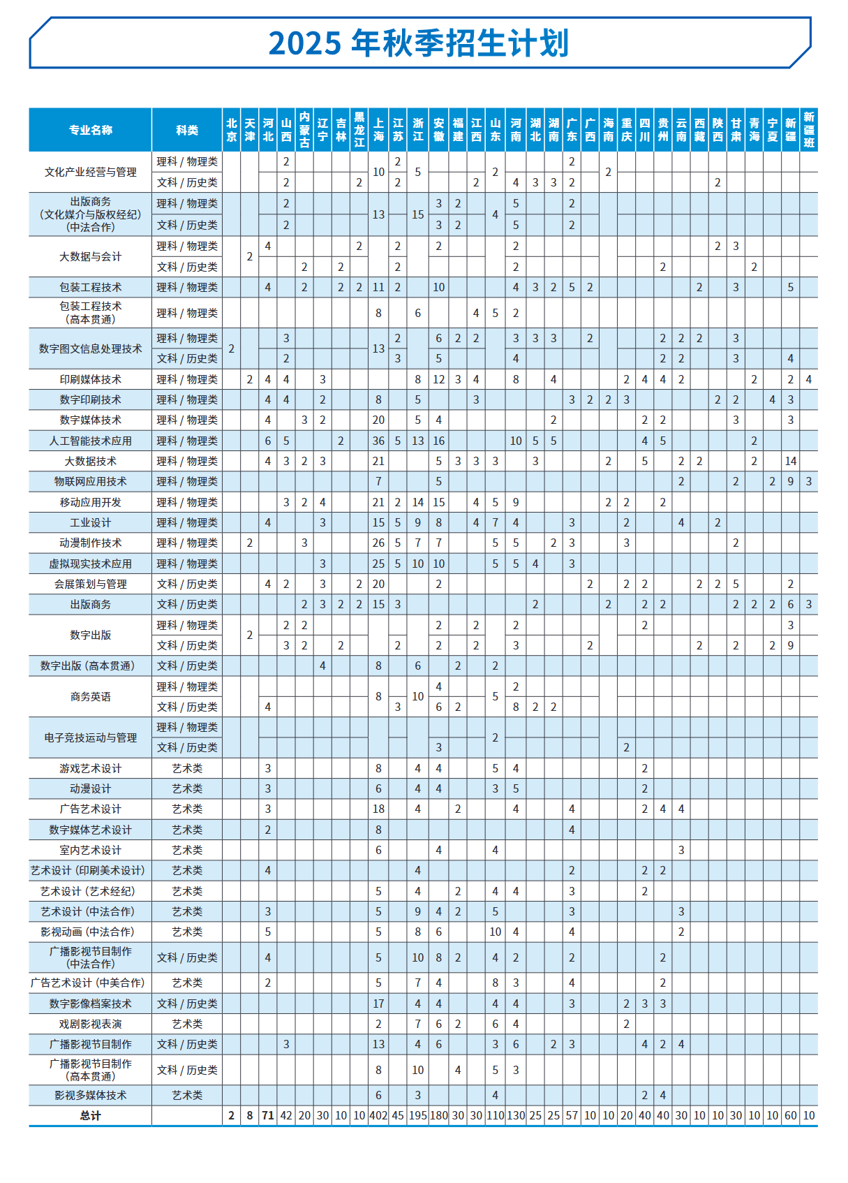 2025上海出版印刷高等专科学校招生计划-各专业招生人数是多少