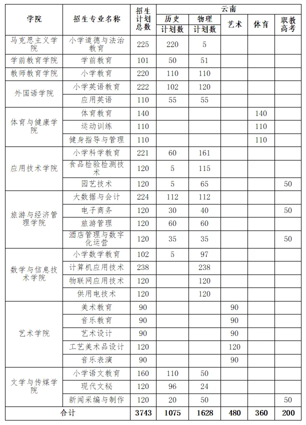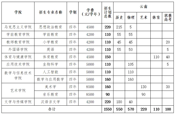 2025丽江师范学院招生计划-各专业招生人数是多少