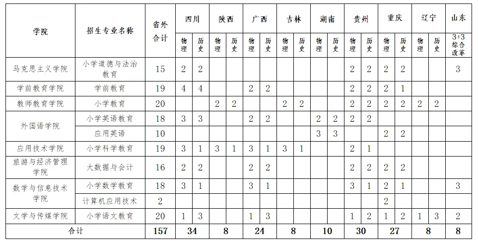 丽江师范学院2025年招生计划共5450人。其中,思想政治教育、小学教育、学前教育等11个本科专业招生计划1550人(均为云南省内计划,其中职教高考本科招生计划100人已完成录取);小学道德与法治教育、小学教育、学前教育等27个专科专业招生计划3900人(云南省内计划3743人,其中职教高考专科招生计划200人已完成录取;云南省外计划157人)。