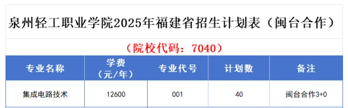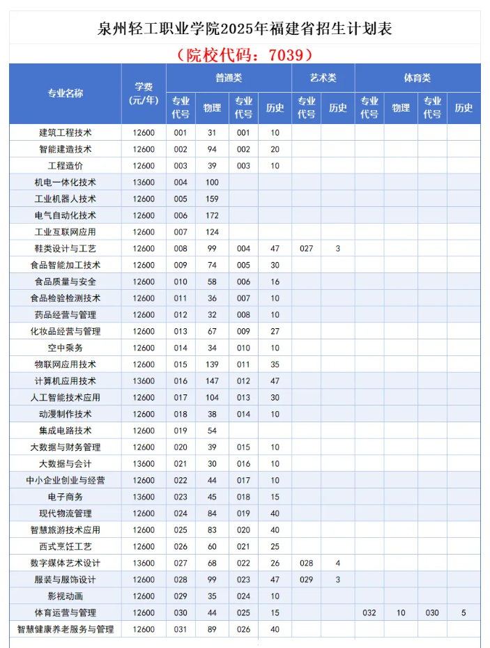 本文为大家整理的是泉州轻工职业学院2025年招生计划,主要包含招生专业、招生类别、各专业招生人数等信息,希望对大家有所帮助,如有变动或异议,请以各省市教育考试院或学校公布的信息为准。