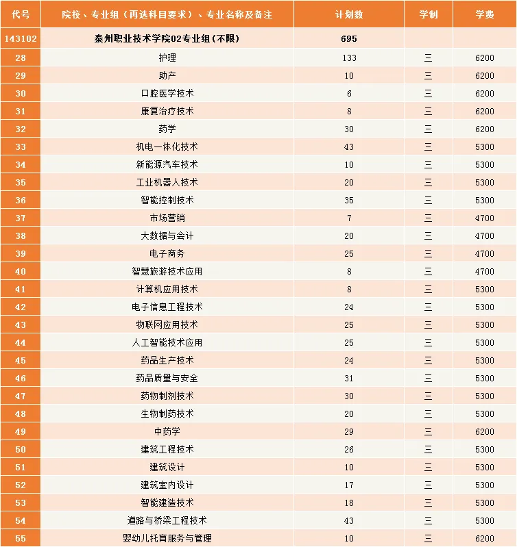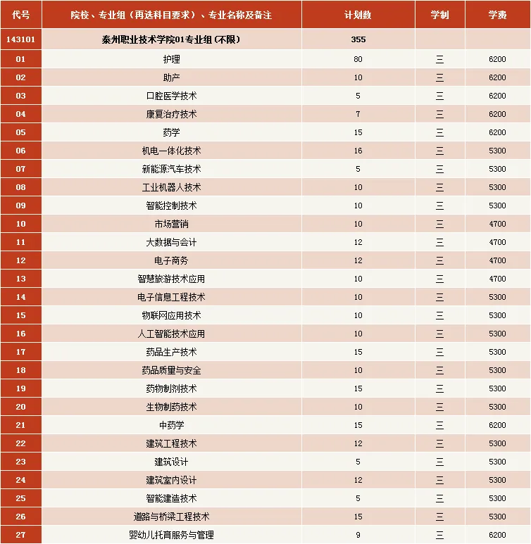 本文为大家整理的是泰州职业技术学院2025年招生计划,主要包含招生专业、招生类别、各专业招生人数等信息,希望对大家有所帮助,如有变动或异议,请以各省市教育考试院或学校公布的信息为准。