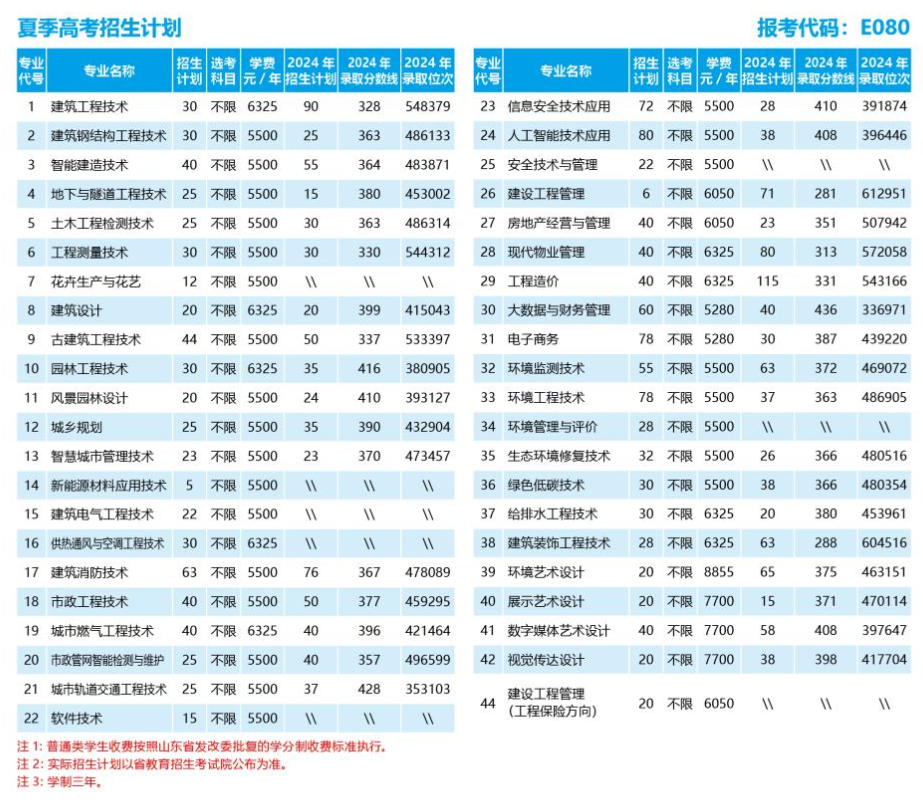 本文为大家整理的是山东城市建设职业学院2025年招生计划,主要包含招生专业、招生类别、各专业招生人数等信息,希望对大家有所帮助,如有变动或异议,请以各省市教育考试院或学校公布的信息为准。