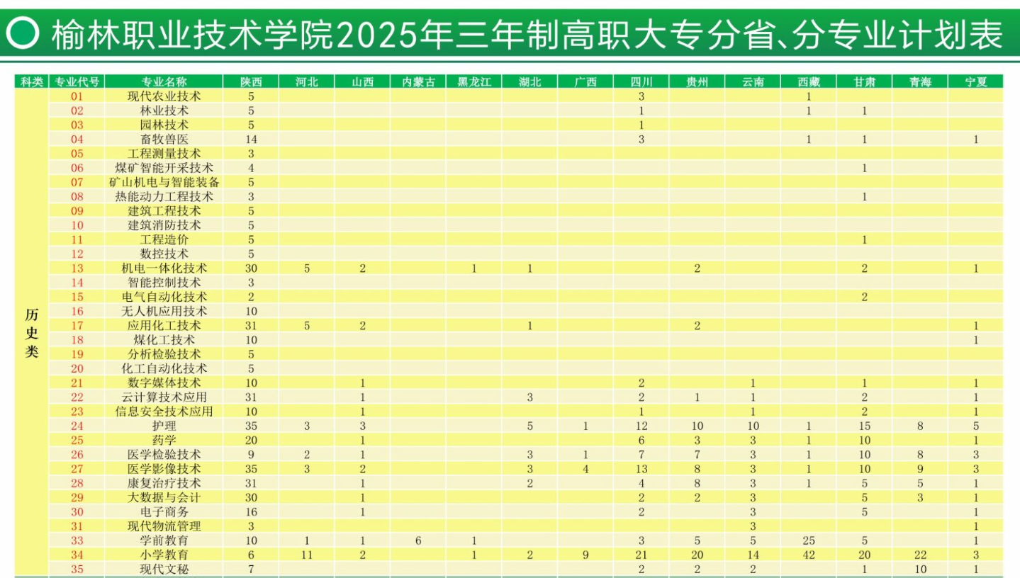 本文为大家整理的是榆林职业技术学院2025年招生计划,主要包含招生专业、招生类别、各专业招生人数等信息,希望对大家有所帮助,如有变动或异议,请以各省市教育考试院或学校公布的信息为准。