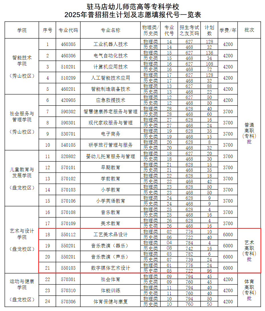 本文为大家整理的是驻马店幼儿师范高等专科学校2025年艺术类招生计划,主要包含招生专业、各专业招生人数等信息,希望对大家有所帮助,如有变动或异议,请以各省市教育考试院或学校公布的信息为准。