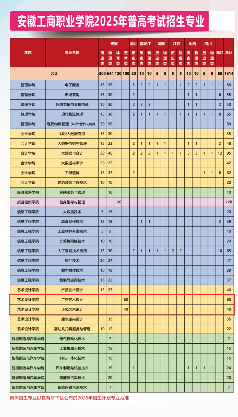 2025安徽工商职业学院艺术类招生计划-各专业招生人数是多少