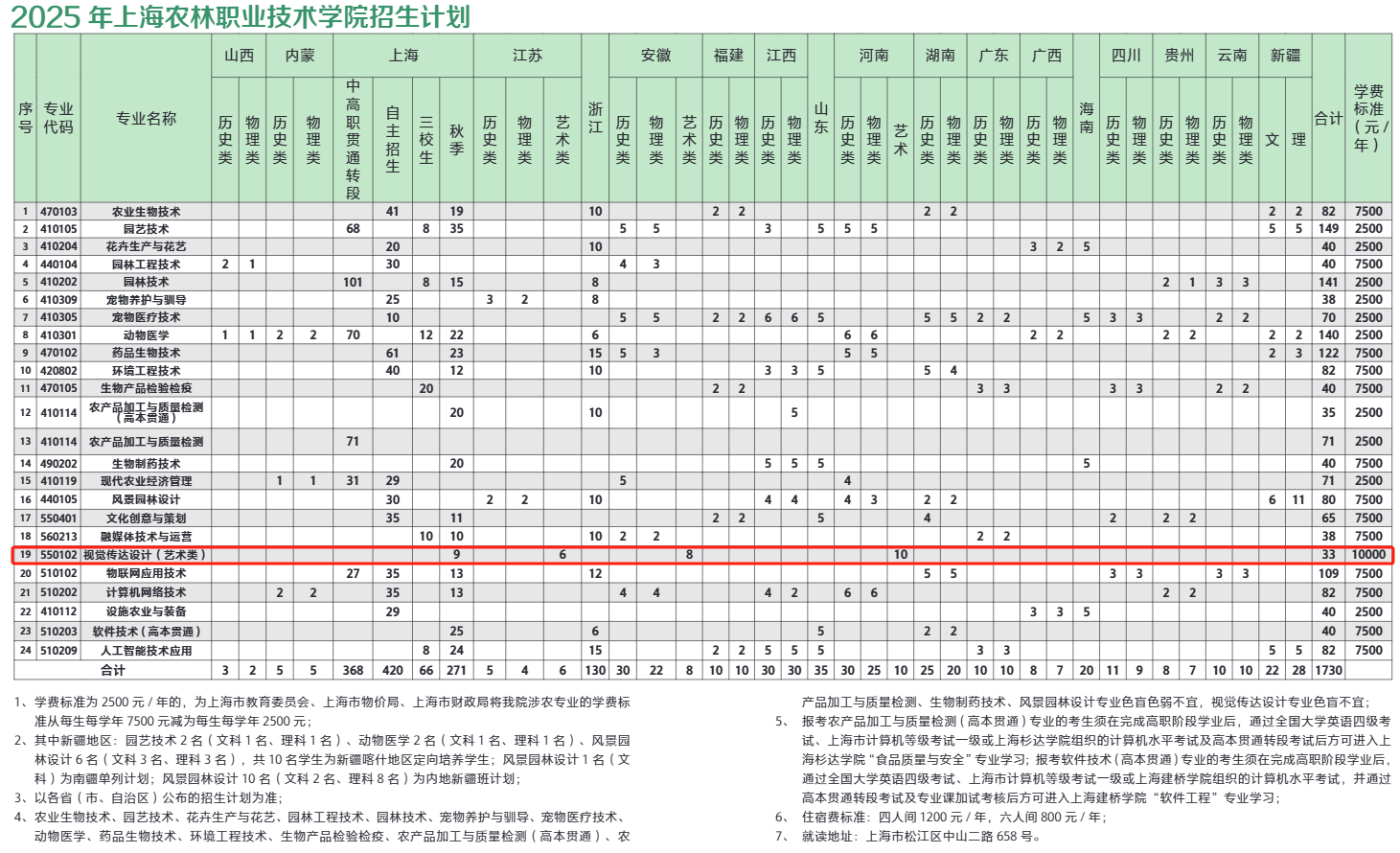本文为大家整理的是上海农林职业技术学院2025年艺术类招生计划,主要包含招生专业、各专业招生人数等信息,希望对大家有所帮助,如有变动或异议,请以各省市教育考试院或学校公布的信息为准。