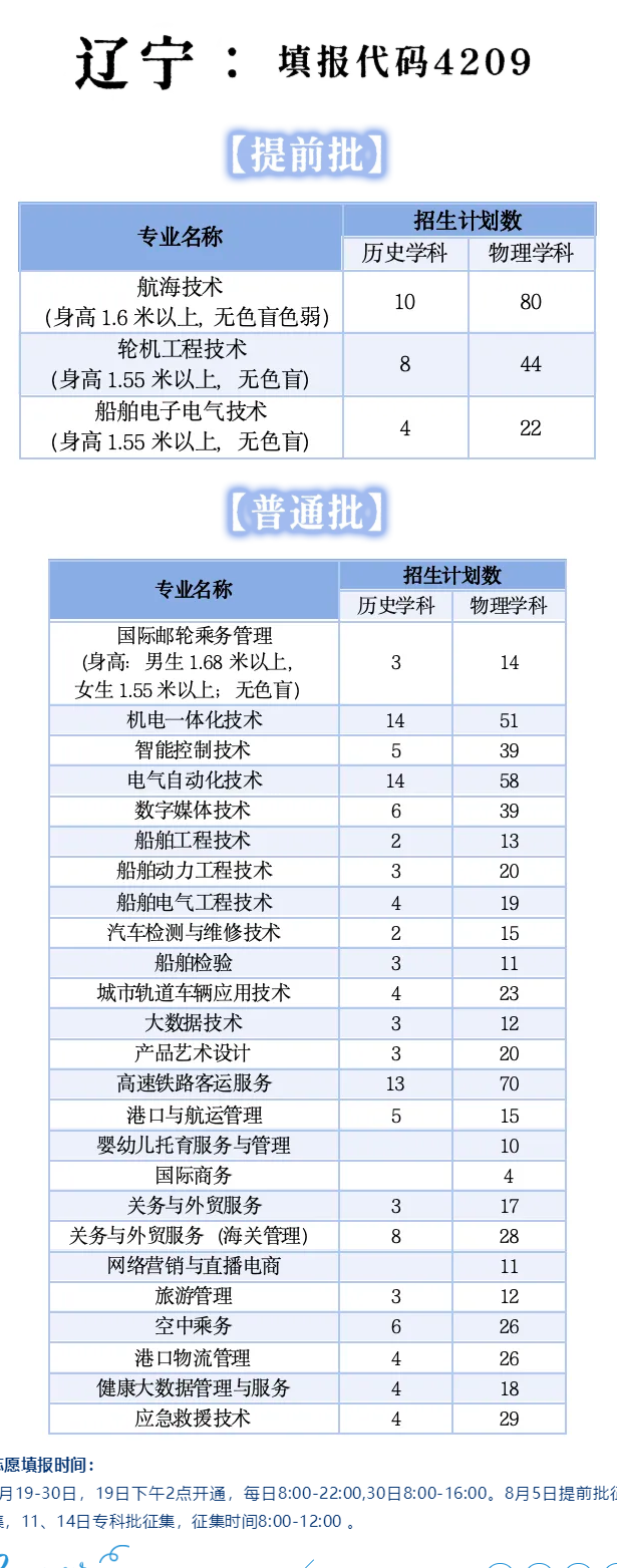 大连航运职业技术学院2025年辽宁省报考代码及招生计划