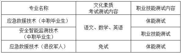 此次高职单招招生考试采取“文化素质+职业技能测试”的模式,考试时间为3月30日(其中文化素质考试时间为9:00—11:00,职业技能测试开始时间为14:00)。各专业考试方式具体见下表。