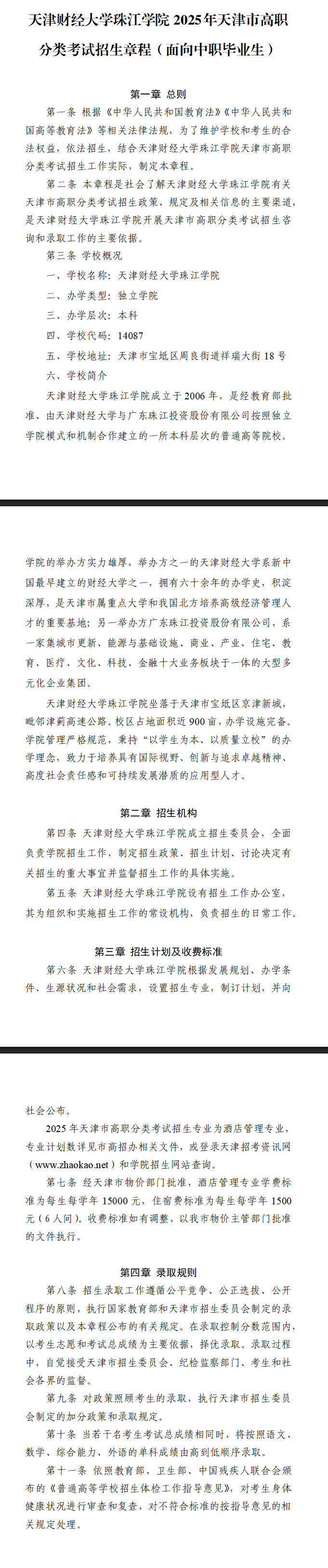 2025年天津财经大学珠江学院高职分类考试招生章程 时间:2025-06-05 高职单招 点击查看完整版:http://www.zhaokao.net/zkzx/system/2025/04/12/030008486.shtml