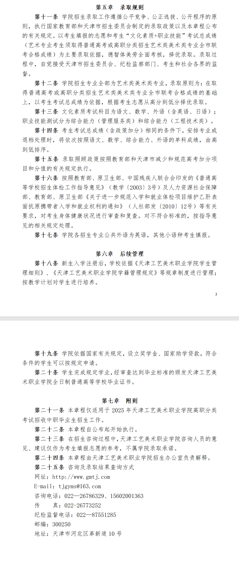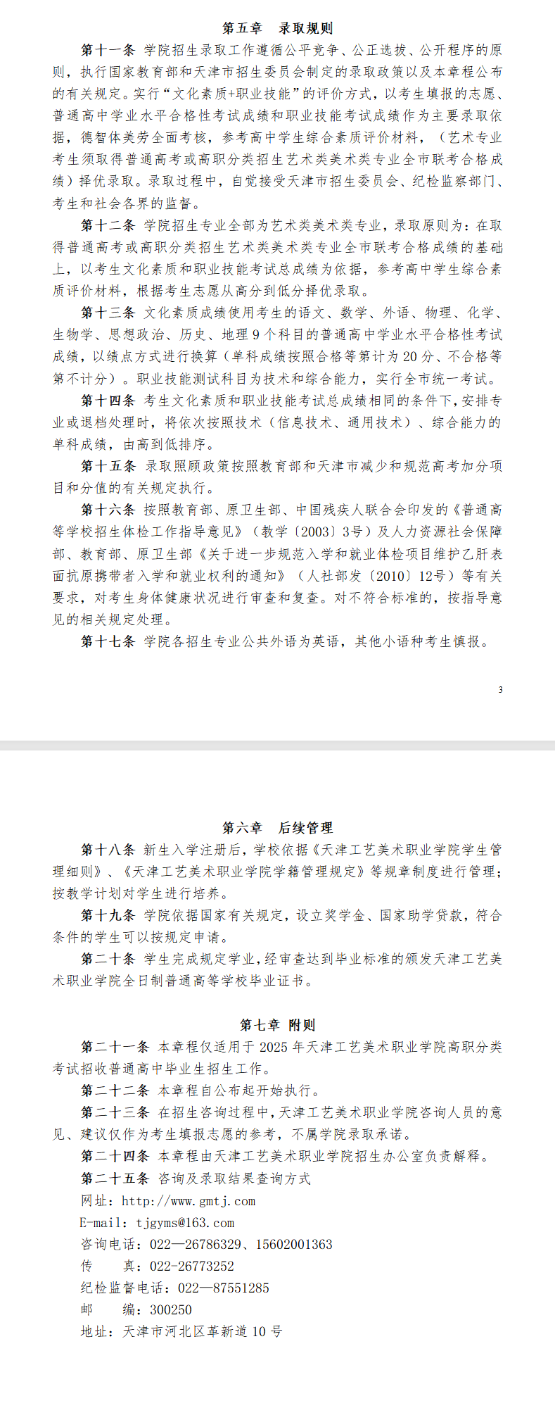 天津工艺美术职业学院2025年天津市高职分类考试(面向普通高中毕业生)招生章程