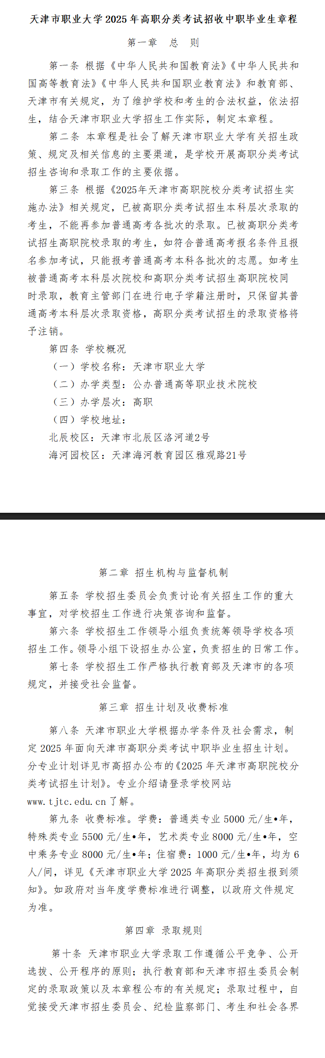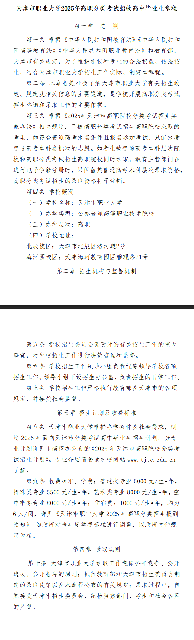 2025年天津市职业大学高职分类考试招生章程 时间:2025-06-05 高职单招 点击查看完整版:http://www.zhaokao.net/zkzx/system/2025/04/12/030008486.shtml