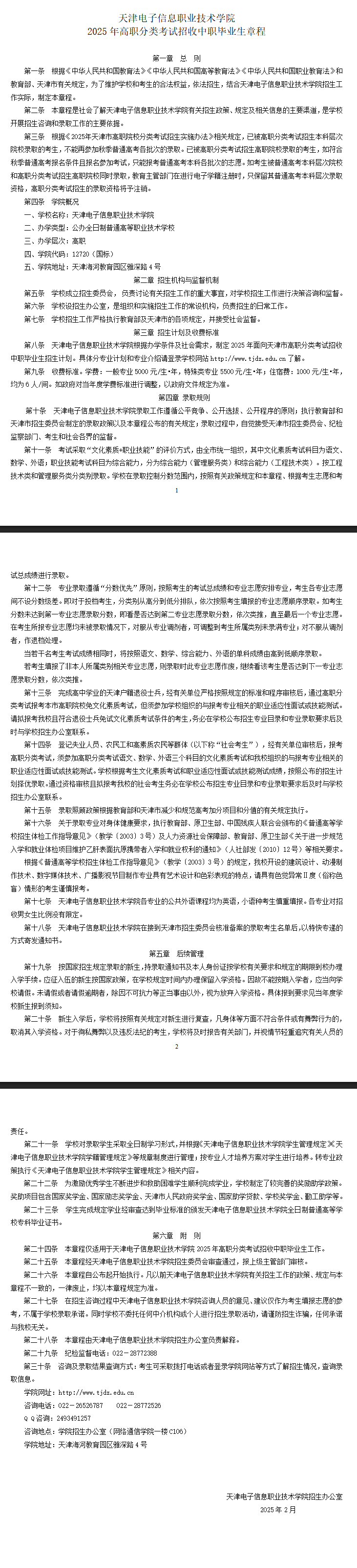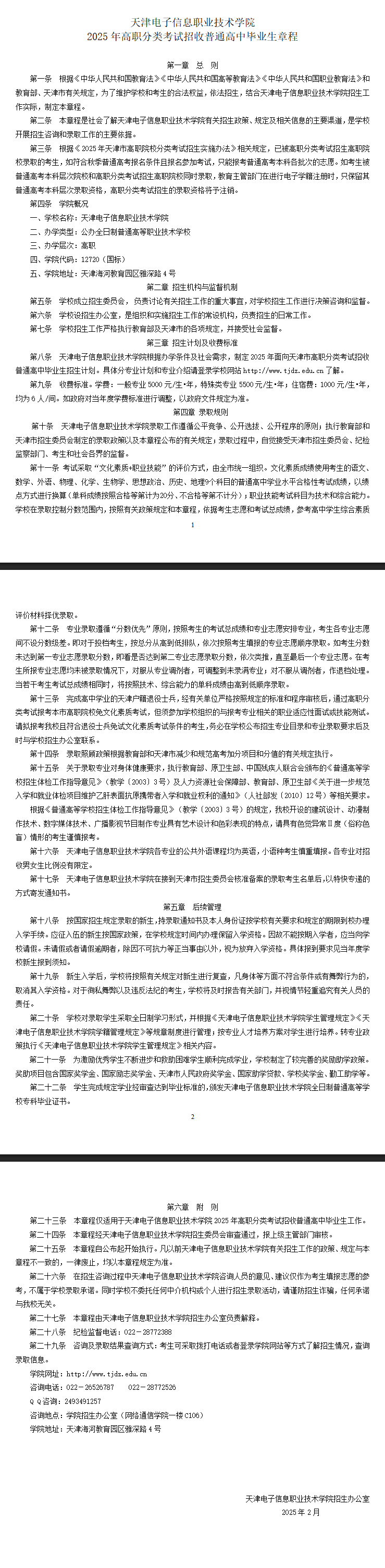 2025年天津电子信息职业技术学院高职分类考试招生章程 时间:2025-06-05 高职单招 本文为大家整理的是2025年天津电子信息职业技术学院高职分类考试招生章程,主要包含学校概况、招生专业、招生计划、收费标准、录取规则等信息,以下是详细内容,供大家参考。