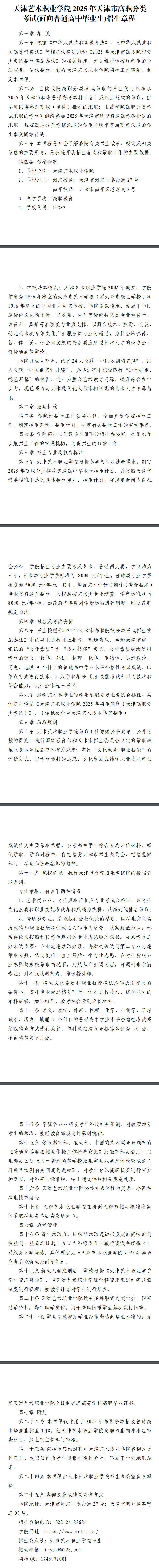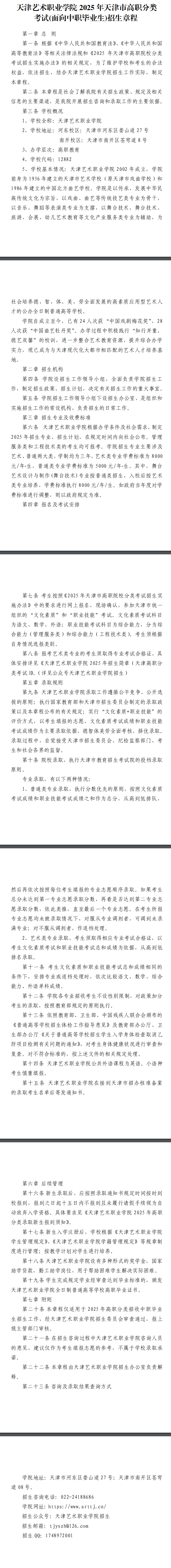 1250天津艺术职业学院2025年天津市高职分类考试(面向普通高中毕业生)招生章程