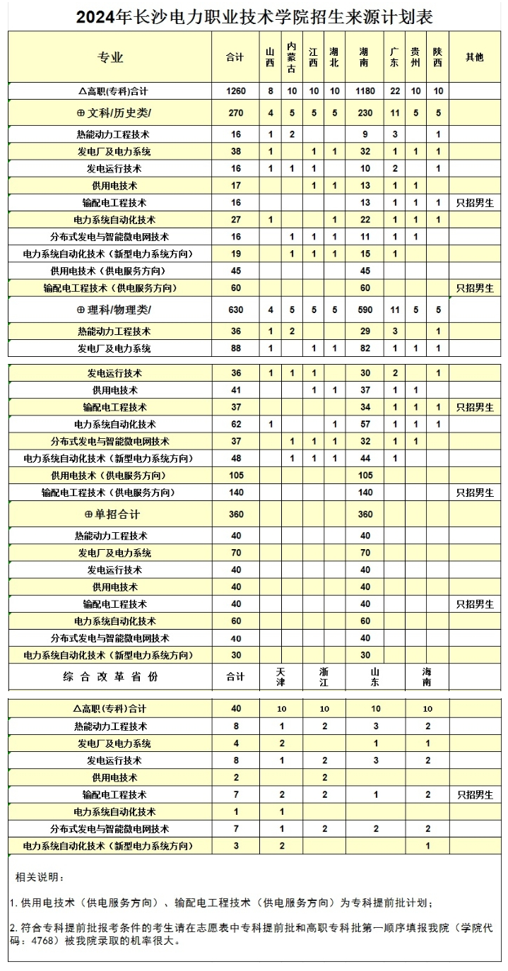 长沙电力职业技术学院2025年招生计划预计将于6月中下旬公布,本文为大家整理的是长沙电力职业技术学院2024年招生计划,主要包含招生专业、招生类别、各专业招生人数等信息,希望对大家有所帮助,如有变动或异议,请以各省市教育考试院或学校公布的信息为准。