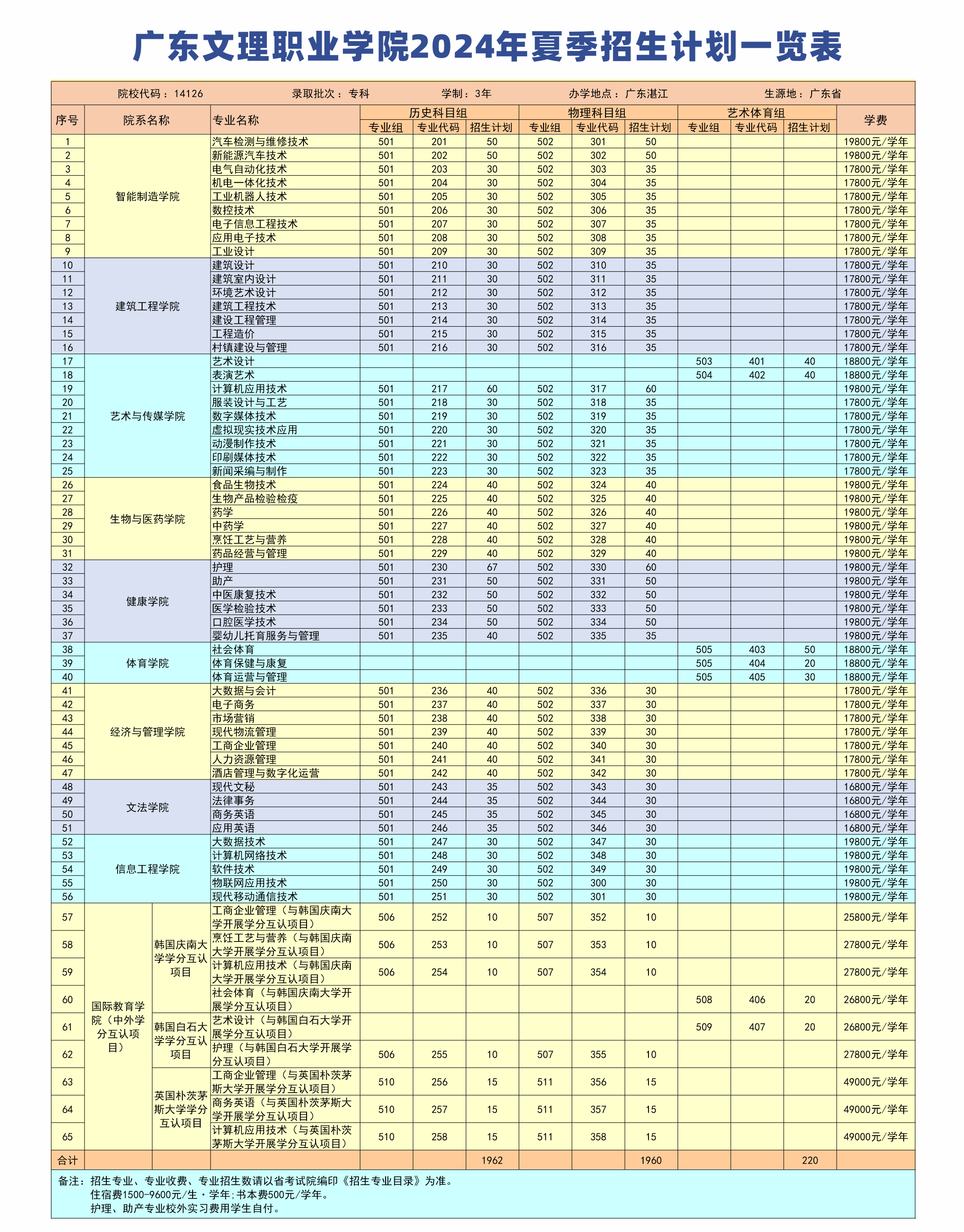 广东文理职业学院2025年招生计划预计将于6月中下旬公布,本文为大家整理的是广东文理职业学院2024年招生计划,主要包含招生专业、招生类别、各专业招生人数等信息,希望对大家有所帮助,如有变动或异议,请以各省市教育考试院或学校公布的信息为准。