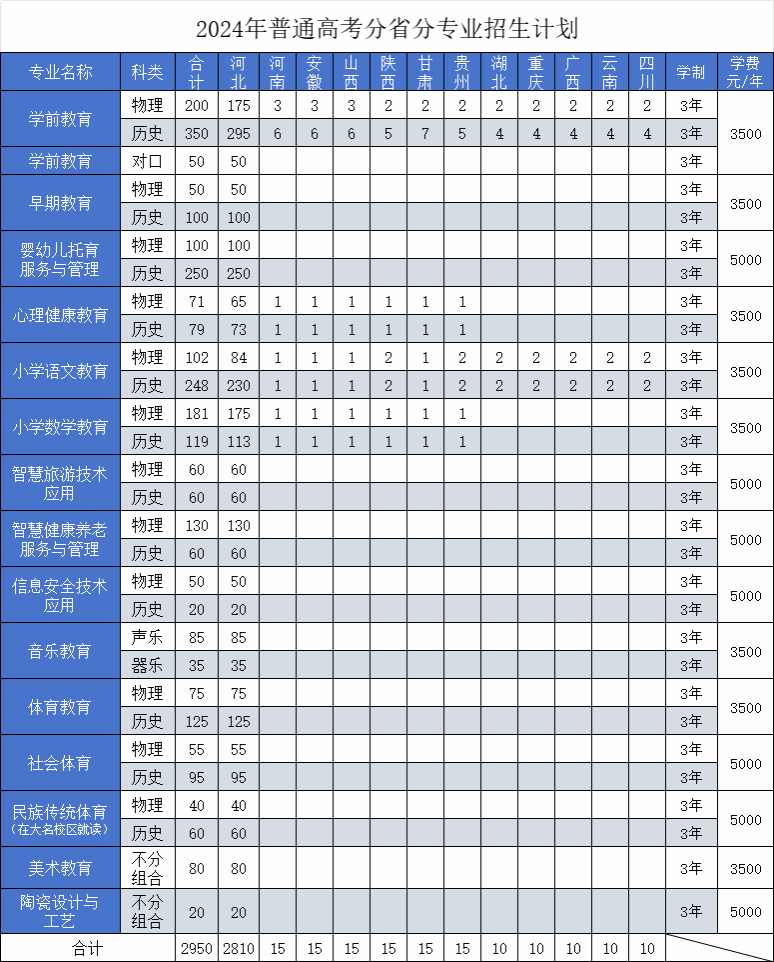 邯郸幼儿师范高等专科学校招生计划-各专业招生人数是多少