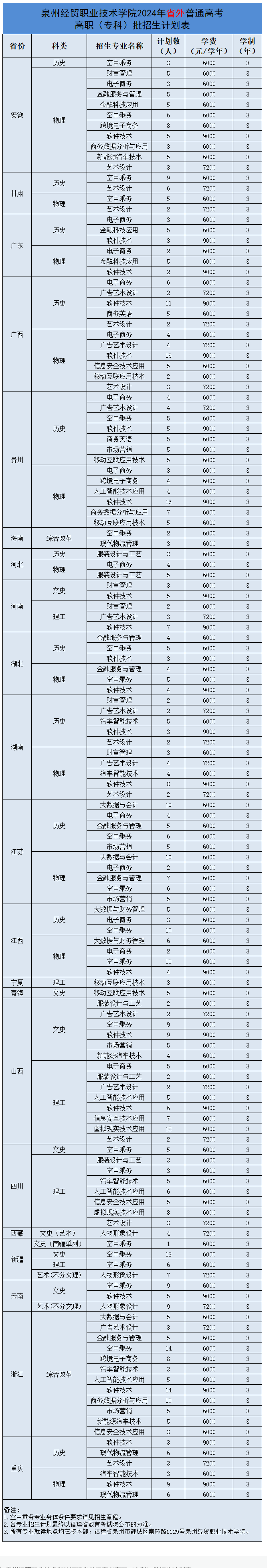 泉州经贸职业技术学院招生计划-各专业招生人数是多少