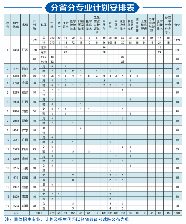 江苏护理职业学院招生计划-各专业招生人数是多少