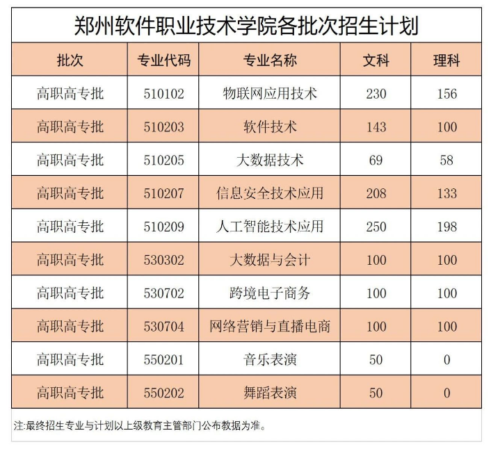 郑州软件职业技术学院招生计划-各专业招生人数是多少