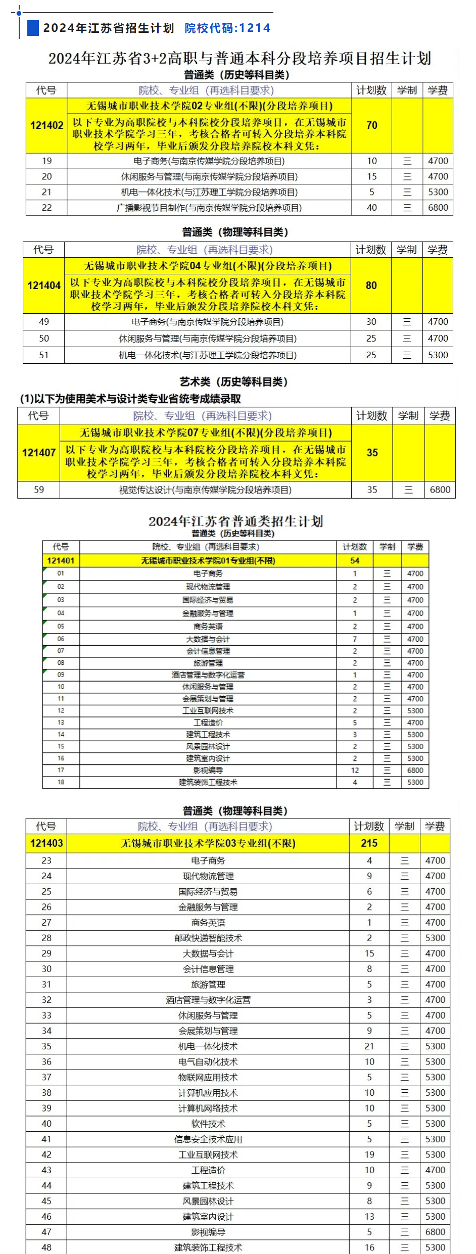 无锡城市职业技术学院招生计划-各专业招生人数是多少