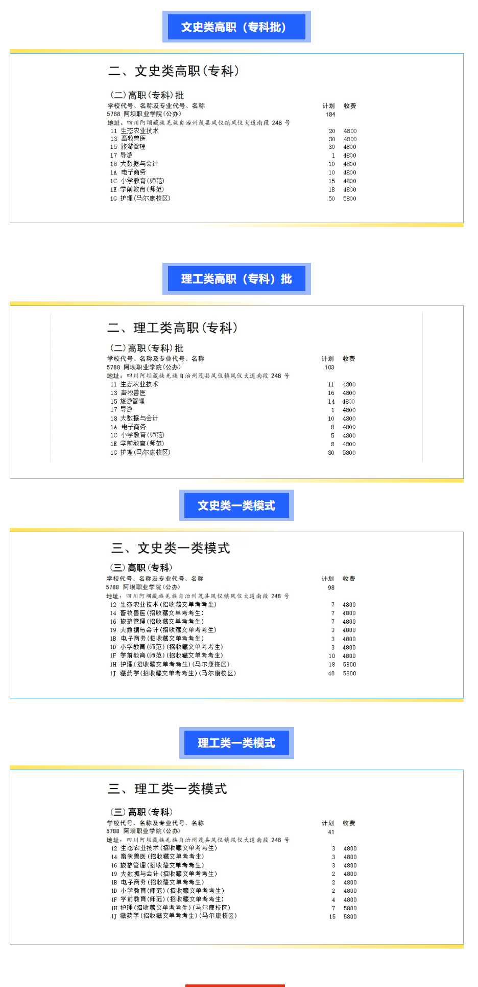 阿坝职业学院招生计划-各专业招生人数是多少