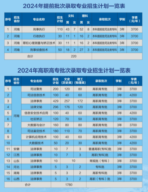 河南司法警官职业学院招生计划-各专业招生人数是多少