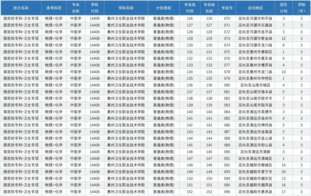 广东省内夏季高考:提前批专科卫生专项批次招生专业及计划