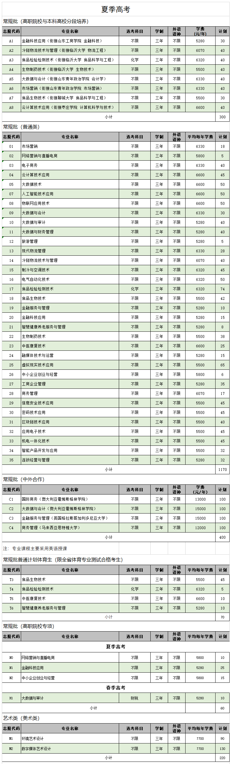 山东商业职业技术学院招生计划-各专业招生人数是多少