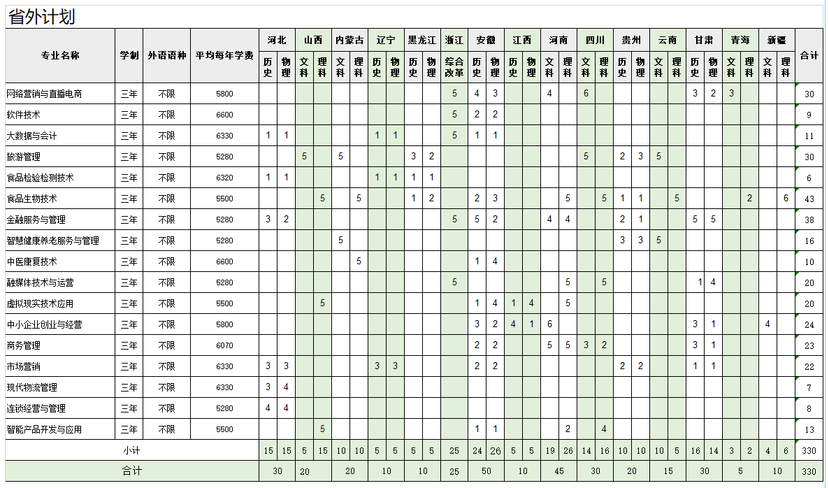 2024年山东商业职业技术学院省外招生计划
