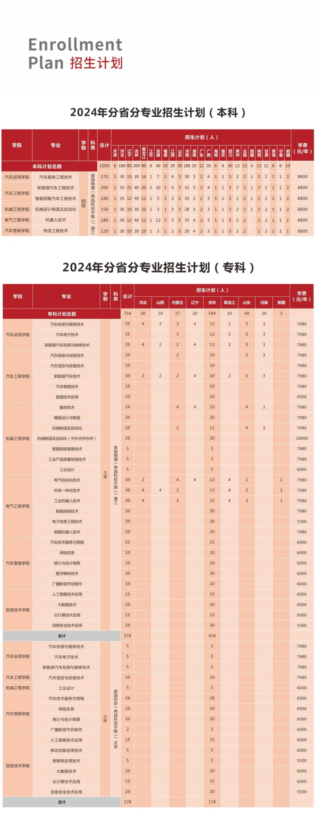 长春汽车职业技术大学招生计划-各专业招生人数是多少