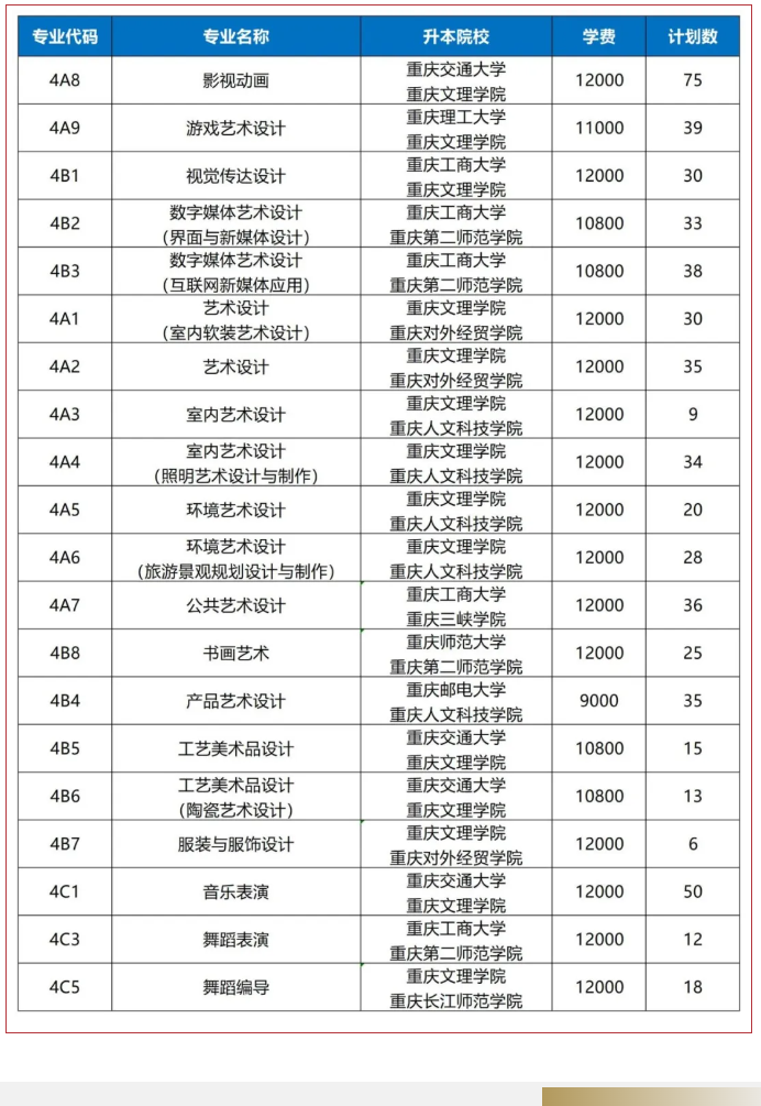 重庆艺术工程职业学院2025年招生计划预计将于6月中下旬公布,本文为大家整理的是重庆艺术工程职业学院2024年招生计划,主要包含招生专业、招生类别、各专业招生人数等信息,希望对大家有所帮助,如有变动或异议,请以各省市教育考试院或学校公布的信息为准。