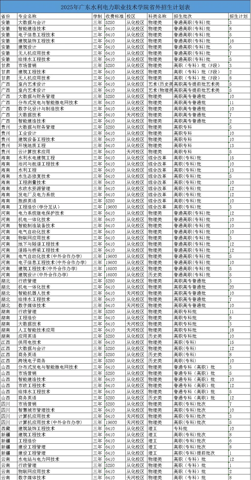 2025广东水利电力职业技术学院招生计划-各专业招生人数是多少