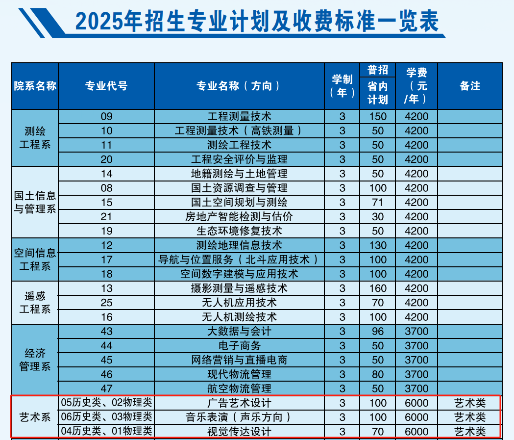 2025河南测绘职业学院艺术类招生计划-各专业招生人数是多少