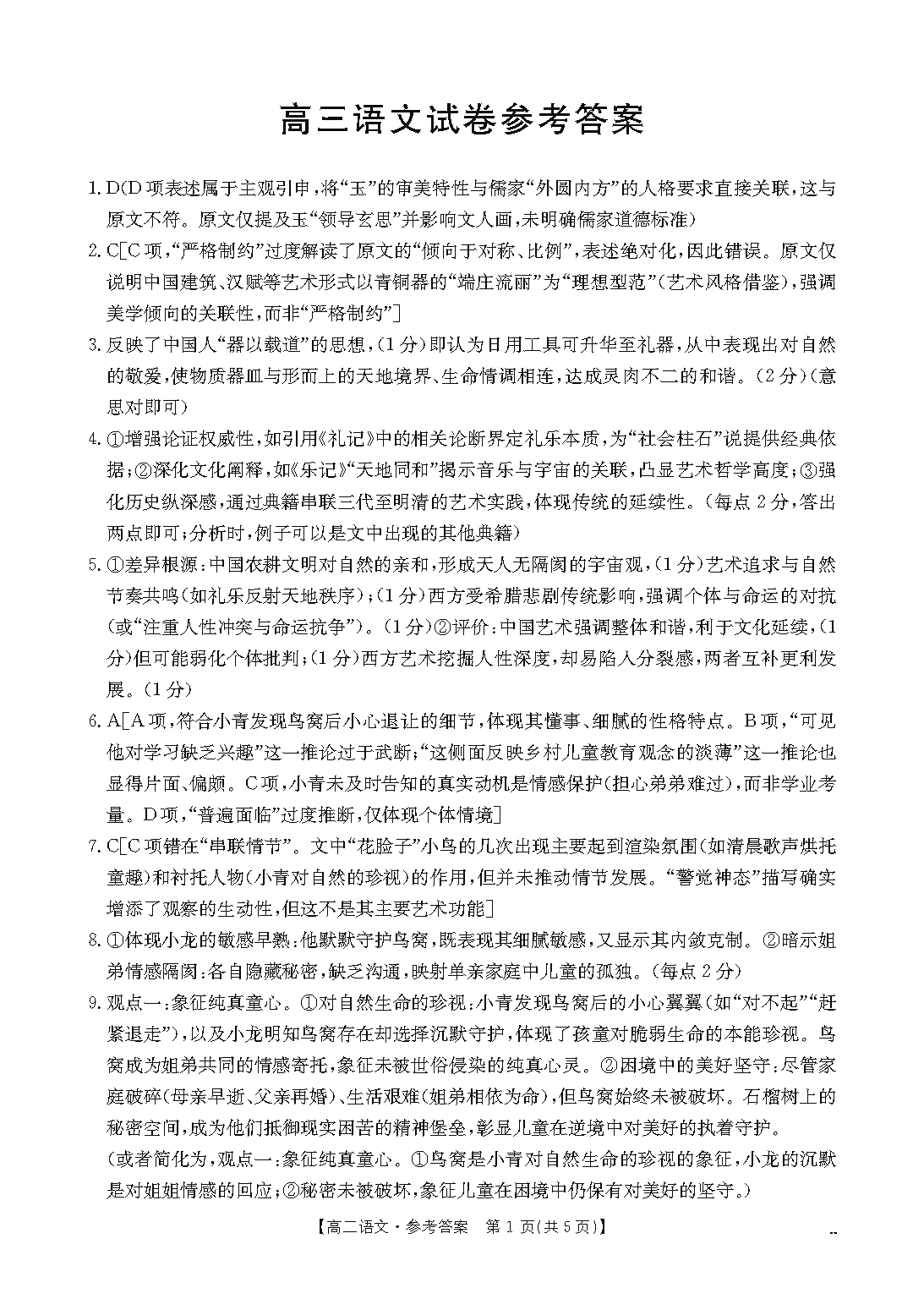 江西金太阳2025-2026学年高三上学期9月联考语文试卷及参考答案